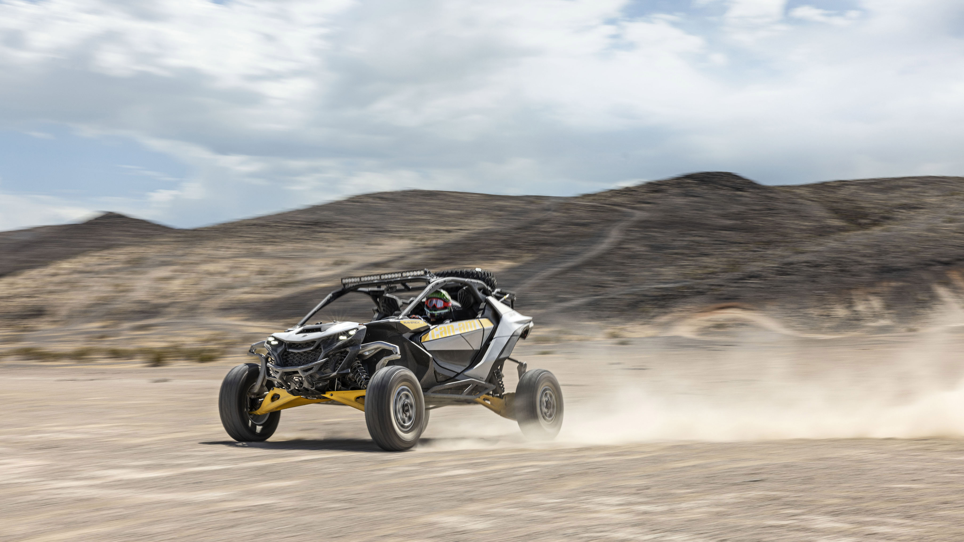 For Can-Am, their obsession with winning motivates every product they develop - and the Can-Am Maverick R is no exception! This new side-by-side is the result of a half century of wild rides, bold innovations and a dedication to excellence. Behind a tireless and teamwide collective effort on every feature, they managed to push innovation and design to new heights. The overall look of the Maverick R is a clear nod to the sudden precision of a cobre, while the cockpit and knuckle in the A-arms give this new vehicle even more caracter and personality. It's their most refined ride ever and it's ready to put a wide grin on your face.