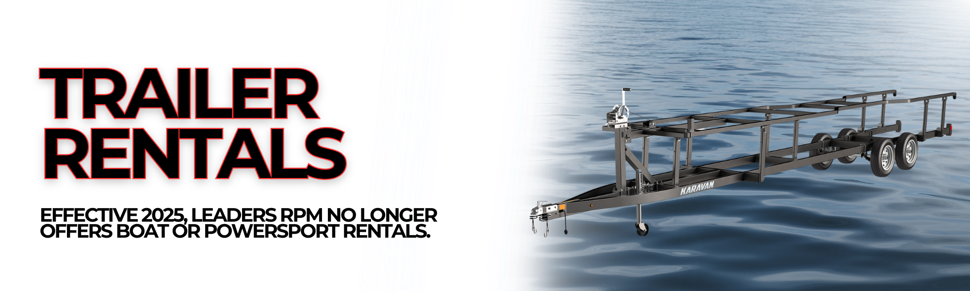 Leaders RPM no longer offers boat or powersport rentals.we offer pontoon trailer rentals for those who need reliable transportation for their watercraft.